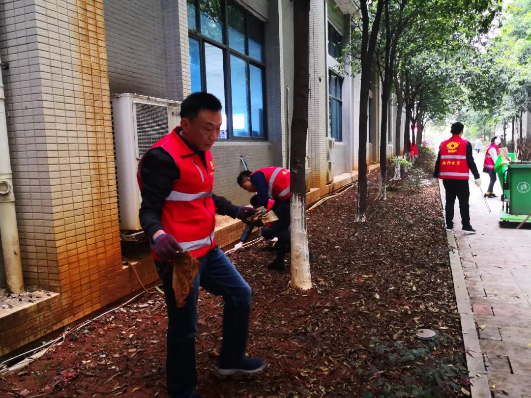 活動得到了郴州高新區(qū)機關第三黨支部的大力指導。炬神電子黨支部書記郭小雷身先士卒,帶領大家清掃道路垃圾、花壇枯枝敗葉,一派熱火朝天。